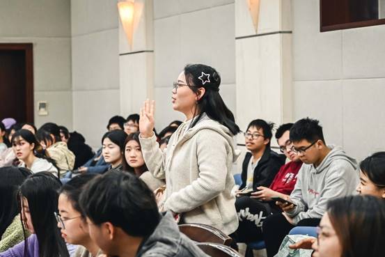 在随后的互动环节中,现场的老师和同学们围绕产业发展、人才培养、自我成长等相关问题进行了热烈的讨论。徐总提出了标准制定与差异发展的重要性,她认为中资邮轮当发挥优势,坚信行业未来向上的发展趋势。就专业人才把握机遇规划发展与职场领导力培养等问题,她认为员工需注重理论与实践的双重培养,主动抓住能提升自我的机会,学会平衡,提前做好自我规划。