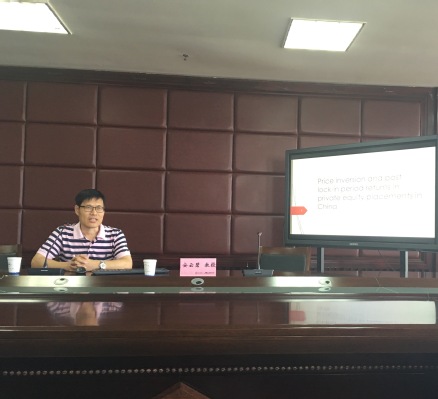 安云碧教授,加拿大温莎大学Odette商公司金融学教授,目前承担众多学术组织和研究机构的重要职务,是欧洲金融管理协会,美国多家金融协会的会员,并担任许多国际著名期刊的审稿专家。其主要研究领域包括公司财务金融、资产组合选择与资产组合保险、风险管理等。安教授首先介绍了定增价格在中国的收益率现状;随后,安教授介绍了通过解锁实现价格倒挂的投资方式,指出定增公司对定增对象进行利益输送;讲座的最后,安教授指出证监会通过对定增价格数量的限制,来提高投资者的市场地位。