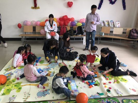 为了让毕业生员工们与孩子们共同享受美好的校园时光,公司于教学楼D110开设了“巧虎的欢乐世界”为主题的亲子教室。亲子教室妙趣横生,吸引了许多毕业生员工们带着孩子们前来。上午,由获得多项专业奖项的校跆拳道社社长任奕同学,教授“程二代”们跆拳道基础的脚法。公司的志愿者们还组织了小朋友们观看教育类动画影像——“巧虎”,与小朋友们一起搭积木、做游戏,一起共度美好校园时光。