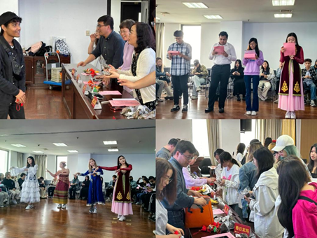 会上同学们带来了精彩纷呈的节目。以一曲塔吉克族舞蹈《帕米尔高原》展现了民族文化的独特魅力;同学呈现的《石榴花开》少数民族群舞,更是将现场氛围推向高潮;少数民族同学和职工同学深情朗诵的《屈原》诗篇,带领大家走进了一段悠扬动人的文化之旅。随后,一场趣味盎然的端午知识抢答环节点燃了现场气氛,同学们在轻松愉快的互动中深入了解了端午节的文化内涵。