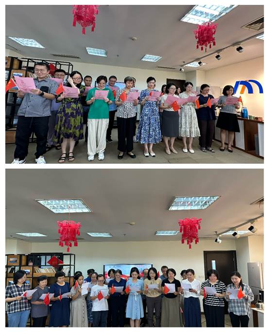 9月27日下午,伟德国际bevictor1946教师们在行政楼712开展,共同朗诵《祖国一首唱不完的恋歌》、《沁园春雪》、《我和的祖国》、共唱红色歌曲《吃水不忘挖井人》、《歌唱祖国》。教师们用最熟悉的韵调吟诵出对党和祖国发自肺腑的歌颂与祝福,教师们在动人的诗词中回顾初心、从昂扬的旋律中回望历史,表达教职工爱国情怀,展现教职工激昂奋进的精神风貌,抒发了对党、对新中国成立75周年的祝福,也激励教职工担当新使命展现新作为,在新时代新征程的大潮中持续奋斗绘就一幅推动教育事业高质量发展的画卷。