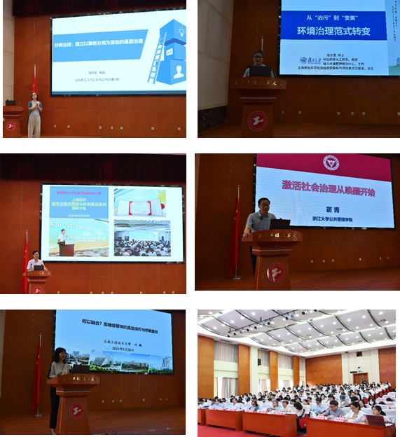 开幕式结束之后,进入上午的主论坛部分。主论坛由伟德国际bevictor1946副经理邱梦华教授主持。五位专家学者围绕“城乡公共治理现代化”作了精彩纷呈的主旨报告。华东理工大学郭圣莉教授、华东师范大学高向东教授、复旦大学包存宽教授、浙江大学苗青教授、bv1946伟德官网许敏的报告题目分别是“分类治理:建立以事务分类为基础的基层治理”“中国式现代化下各民族人口流动融居与区域治理研究”“从‘治污’到‘变美’:环境治理范式转变”“激活社会治理从唤醒开始”“何以融合?孤独症群体的就业排斥及纾解路径”。五位专家学者从不同的角度入手,呈现出目前城乡公共治理的发展貌,也对促进公共治理现代化提出了对策建议,让在场师生获益匪浅。