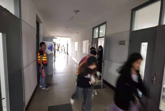 保卫处消防科吴挺老师以多媒体教学的方式,对与会人员进行了专业消防安全教育。适逢“国家安全教育日”,吴挺老师向参与演习的师生播放了2012年某地区发生地震后员工和教师的逃生实录,并结合最近发生的电动车在电梯自燃的热点新闻,向师生讲述了应急情况下正确处理险情的方法。14:00警报声响起,工作人员通知师生按要求从东西两侧楼梯撤离。整个演练过程中,同学们集中思想,听从指挥,动作迅速,疏散有序。最后,李旭芳老师在实训楼一楼对消防演习进行人数清点,并对此次消防演习进行了总结。