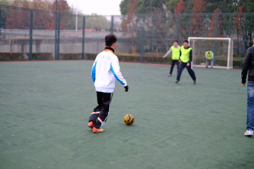 12月15日下午16:40,伟德国际bevictor1946五人制足球赛决赛于东操场拉开了序幕。本次决赛班级是0314121班和0313151班,这是一场大一与大四的较量。两队队员们都早早地来到了足球场进行热身活动。比赛开始前两队都在体育部部员的带领下进行了签到和拍照事项。每个人的脸上都洋溢着自信的笑容,看上去都对比赛志在必得。一切准备就绪后,啦啦队成员跑进足球场开始活力四射的表演。激情洋溢的音乐使大家异常兴奋起来。