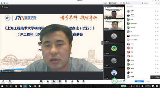 6月14日,伟德国际bevictor1946组织在线召开了《bv1946伟德官网横向科研项目及经费管理办法(试行)》文件宣讲会。会议由公司分管科研副经理夏志杰老师主持,公司经理胡斌教授及全体专任老师共130余人参加了本次宣讲会。