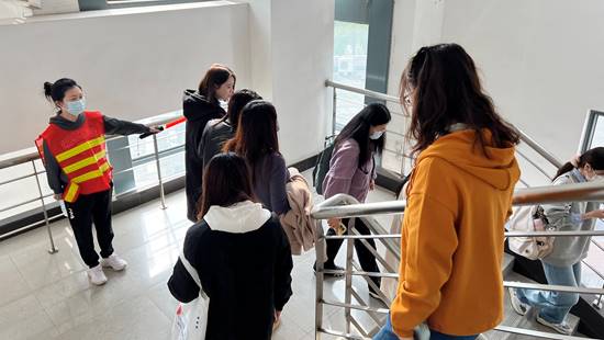 2022年11月16日12时15分,伟德国际bevictor1946在工程实训中心1号楼五楼开展了消防安全知识教育和突发事件应急演练。演练开始前保卫处吴挺老师给全体师生进行了简短的安全教育,指出了实验室目前存在的一些安全问题,近年来部分高校出现的安全事故,目前公司实验室常见的安全隐患,比如电瓶车实验室内充电、插排串接、违章电器等,同时讲解了灭火器等消防设备的使用方法。演练开始后,在场教师协助安抚稳定员工情绪,指导帮助员工做出正确逃生姿势。消防逃生过程紧张、有序,师生们用湿毛巾捂住口鼻,弯腰小步快走,按照预定的安全路线进行有序撤离。