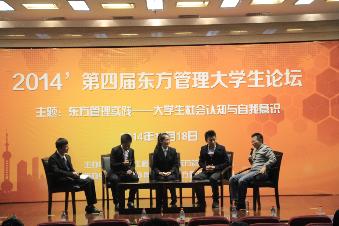 论坛邀请了沪江网联合创始人于杰博士发表主题演讲,于博士的演讲形式新颖独特,声情并茂。他从自己创业经历出发,从8个人,8张椅子开始到现在成为网络教育的最大家,讲述了自己结合东方管理以人为本,以德为先,人为为人的“三为”思想在企业实践中的应用,与在座同学分享了沪江网的成长历程,其丰富的创业经历、激情的主旨演讲,深刻影响了在座的学子,会后同学们普遍表示受益匪浅。