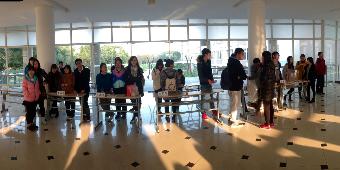 时至四点,E、F楼之间平台上已有为数不少的员工会工作人员匆匆筹备的身影,更不乏同学们那一张张对招新怀抱着期待之情的面孔,足以见得此次招新规模虽小,但前来面试的同学都是有备而来。16:30,招新准时开始,各部门部长携部门干事纷纷就位,准备迎接前来报名的同学,都用着自己不同的方式吸引着同学们的注意,有的高举海报、有的大声宣传、有的主动介绍……同学们也奔着自己心仪的部门积极主动地咨询相关问题,填写报名申请表。E、F楼平台的报名尽然有序地进行着的同时,D、E楼教室里的面试更是如火如荼,上学期的新晋干事们也体验了一把面试官的瘾,自如地从去年面试者的角色转化为了如今面试官的角色,为此,干事们也算是做足了准备,早早地准备好了面试提问的问题。同学们也镇定自若,流畅自如地一一作答。面试现场气氛紧张却不显拘束,谨慎但不乏生气。招新会在六点整圆满落下了帷幕,最终录取名单也将经全体工作人员的努力在近日确定、发布并通知。