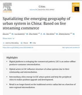 近期,伟德国际bevictor1946教师邹琳在数字经济与城市体系重构研究领域收获最新成果。相关成果“Spatializing the emerging geography of urban system in China: Based on live streaming commerce”发表于城市规划学、城市地理学的国际权威期刊《Cities》(中科院分区SSCI一区,JCR城市研究类TOP2)。