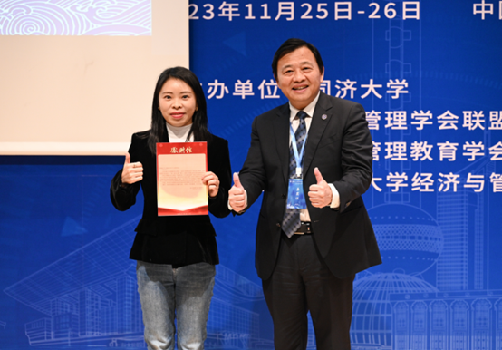 论坛在轻松的歌曲《海阔天空》的之后,迎来了保留节目辩论赛。拔草瞻风论纵横,雄辩善思展芳华,同学们以《躺平对老员工来说是毒药还是解药》展开了精彩的辩论。辩论队正反方对于各自的主张,紧扣主题,据理以争,通过分析,在当前的社会大前提下,躺平给老员工带来的是失格还是救赎,老员工在不断内卷的情况下应该怎么做,既锻炼员工快速思辨言语能力,又提升员工缜密思维的逻辑性。辩论双方紧张激烈,又不失礼仪、风度与幽默,赢得了在场老师同学的热烈掌声与笑声。论坛共收到56篇论文,并评选出优秀论文一等奖一名,二等奖三名,三等奖六名,方太集团李虹女士为获奖员工颁奖并合影留念。